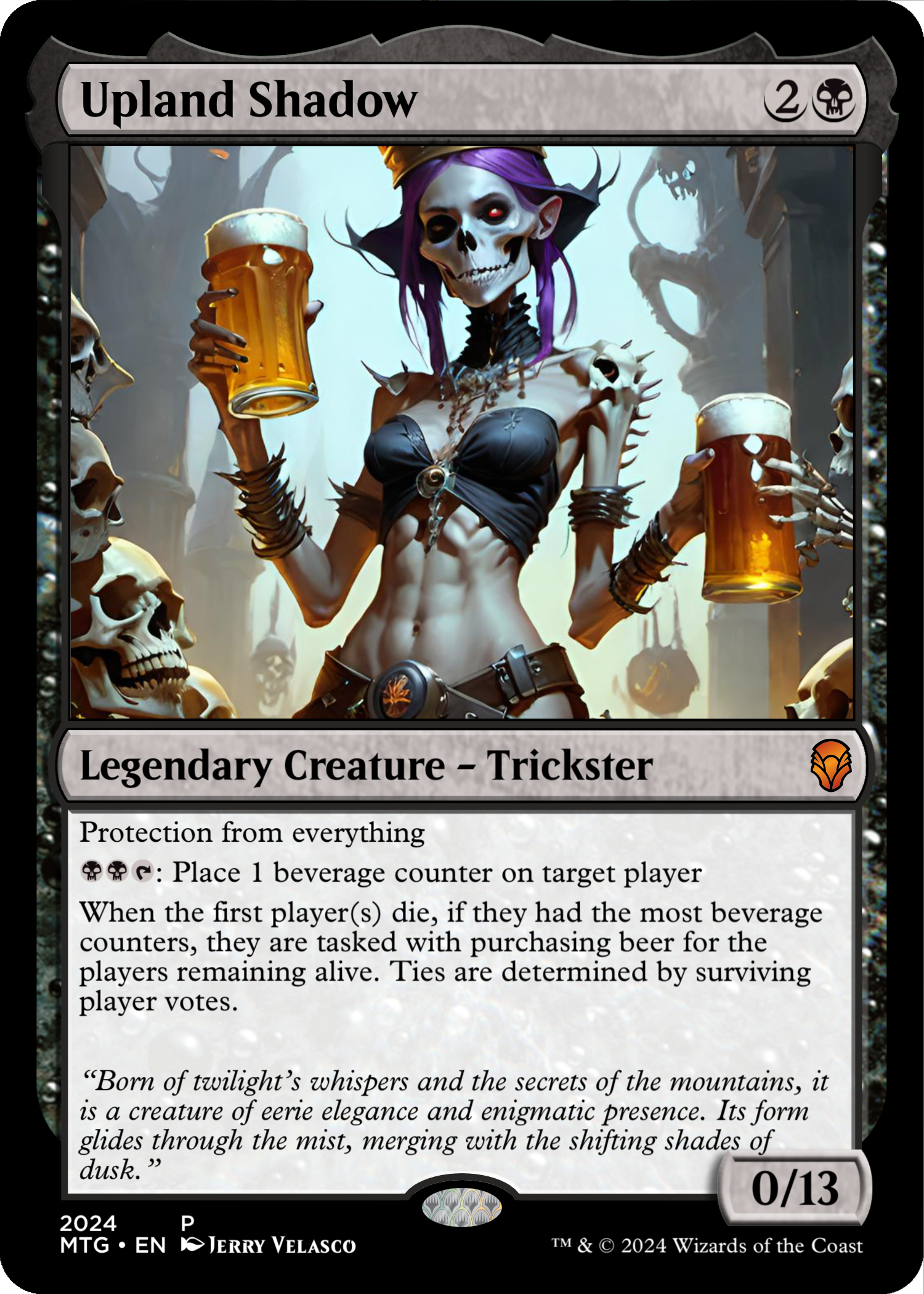 OVERALL: This card has the least personal reference, at the same time it’s a personal statement on ‘protections’ that are needed in this world. The image showed up out from a series of image generations. The texture and composition seemed very ‘magic’. I also wanted to create a card that wasn’t a creature.