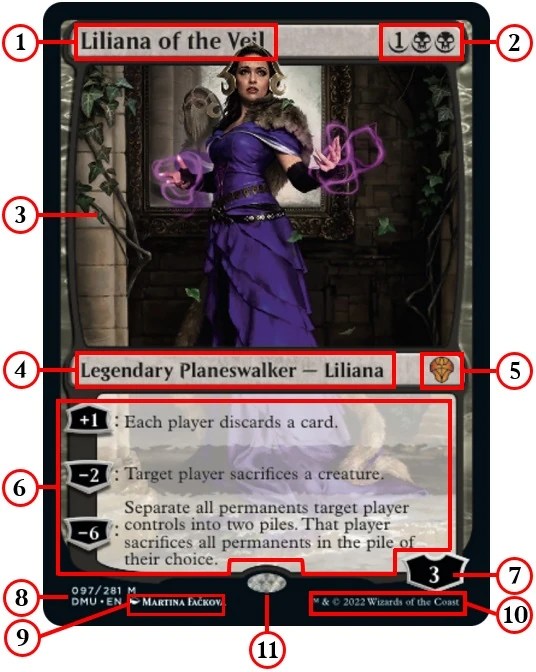 3) Card Art: This is typically a humanoid image of the planeswalker.